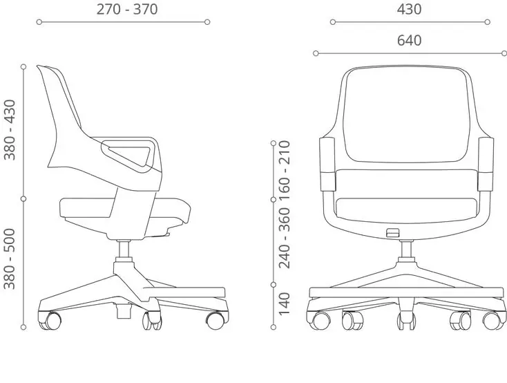 - Duży zakres regulacji wysokości siedziska: 38 cm - 50 cm od podłoża.